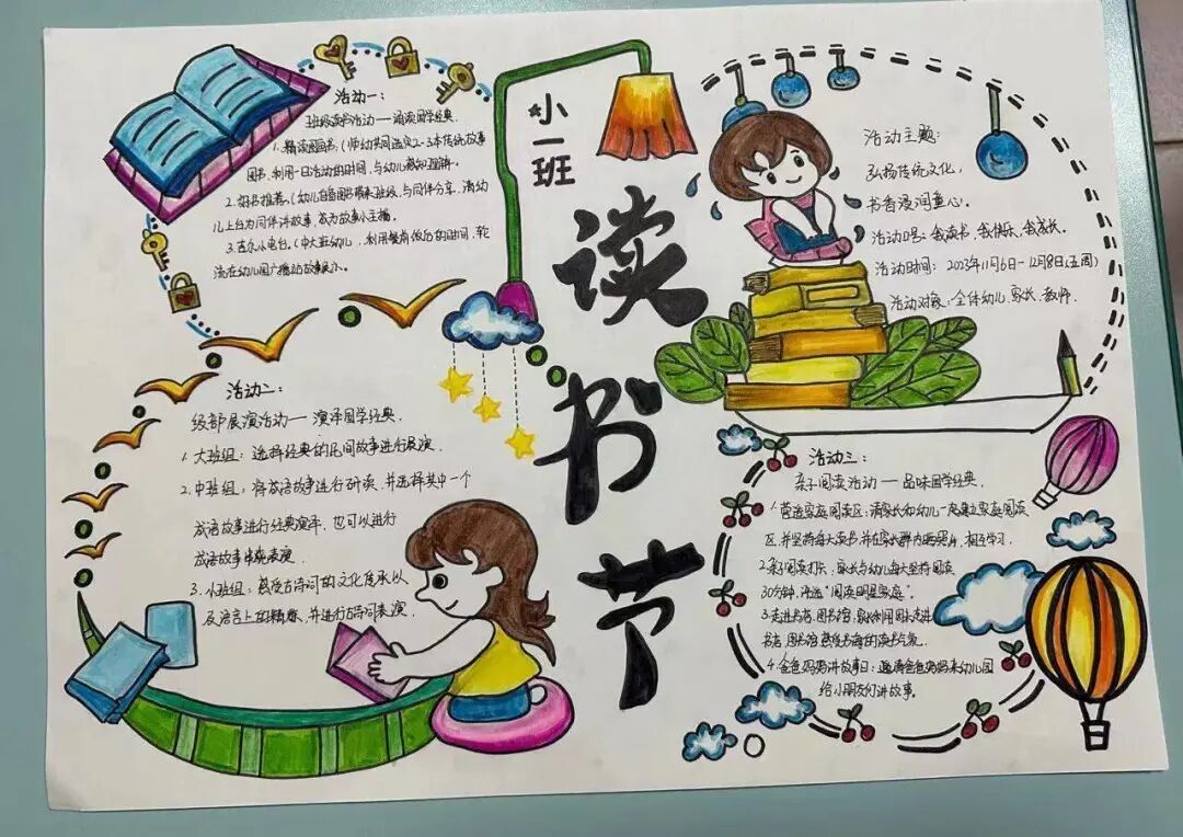 为了营造浓郁的读书节氛围,各班教师手绘制作读书节海报,并转发到班级群,张贴在家园宣传栏,宣传读书节系列活动内容,激发孩子阅读兴趣,鼓励孩子和家长积极参与。