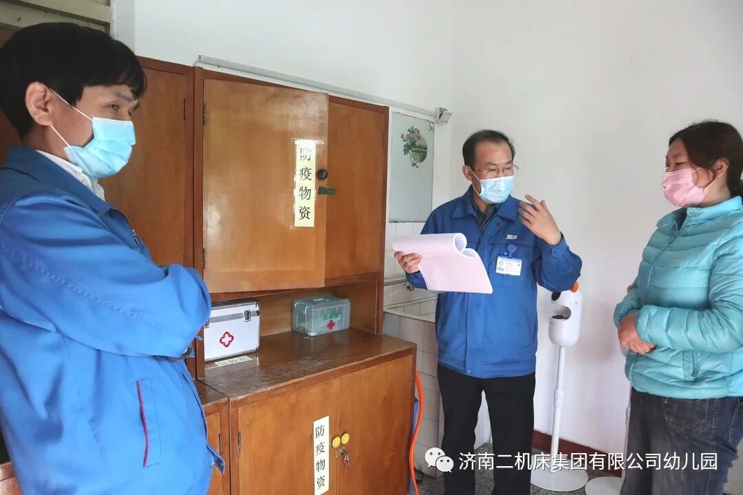 集团公司副总经理赵明纪、高级技工学校校长李新生多次到园,亲自指导幼儿园疫情防控工作。