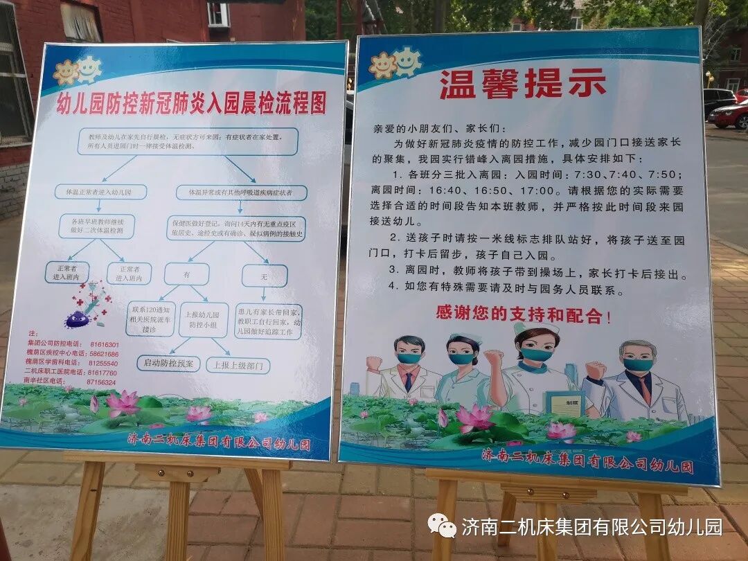 阳光正好,微风习习。疫情渐消,开学在即。为切实保障开园后师幼健康,济南二机床集团有限公司幼儿园认真做好疫情防控形势下复园开学准备工作,以全优的成绩成功通过了槐荫区开学条件核验。按照上级安排,即将于6月8日复园开学。