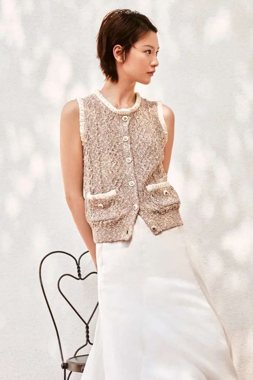 你想找的休闲质感穿搭在这里!DAZZLE肌理四季针织马甲搭配真丝半裙,光泽柔和的素绉缎面料质地细腻,动静间展现细腻流动感,轻松穿出优雅。
