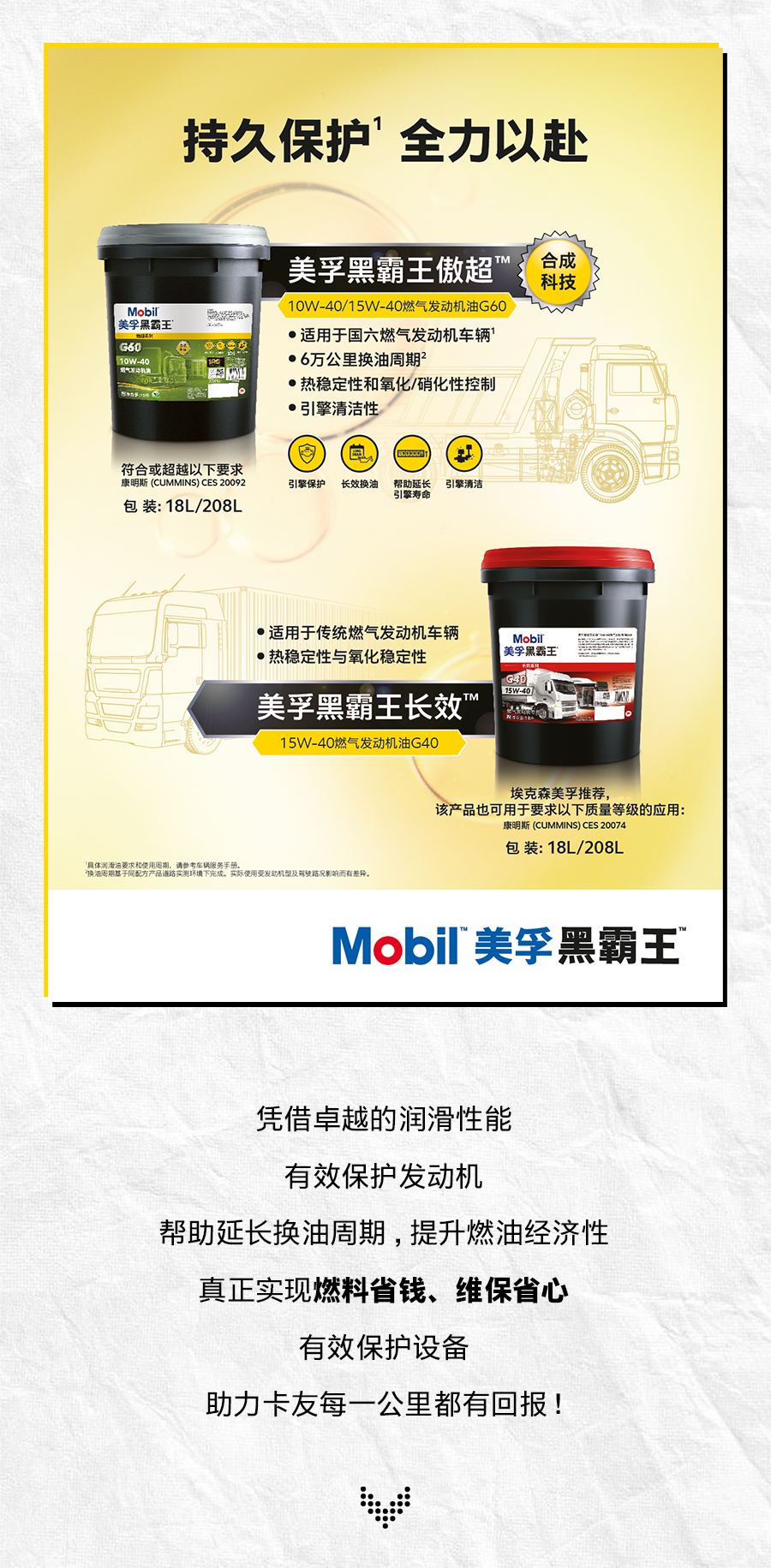 摘要:美孚黑霸王™百年科技沉淀,解忧燃气发动机,助您每一公里都有回报