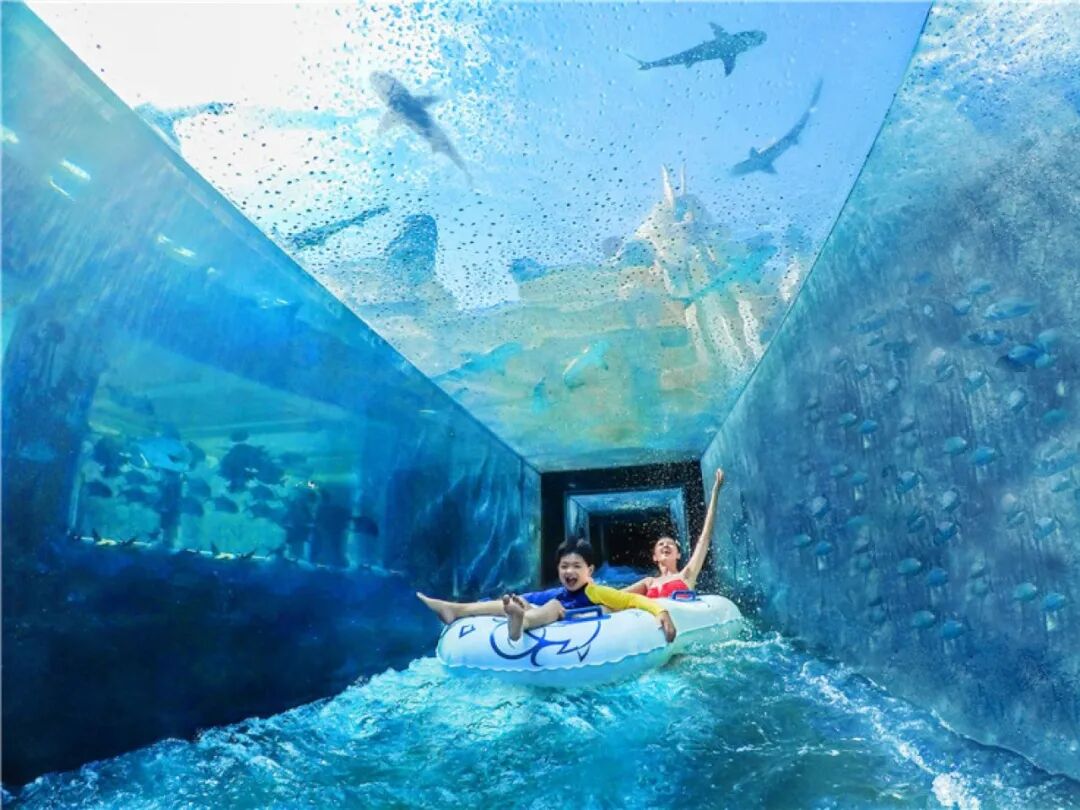滑道底端是生活着数十只鲨鱼的鲨鱼池,一条条张着血盆大口的鲨鱼就从你身边游过,完成穿越成为小勇士!