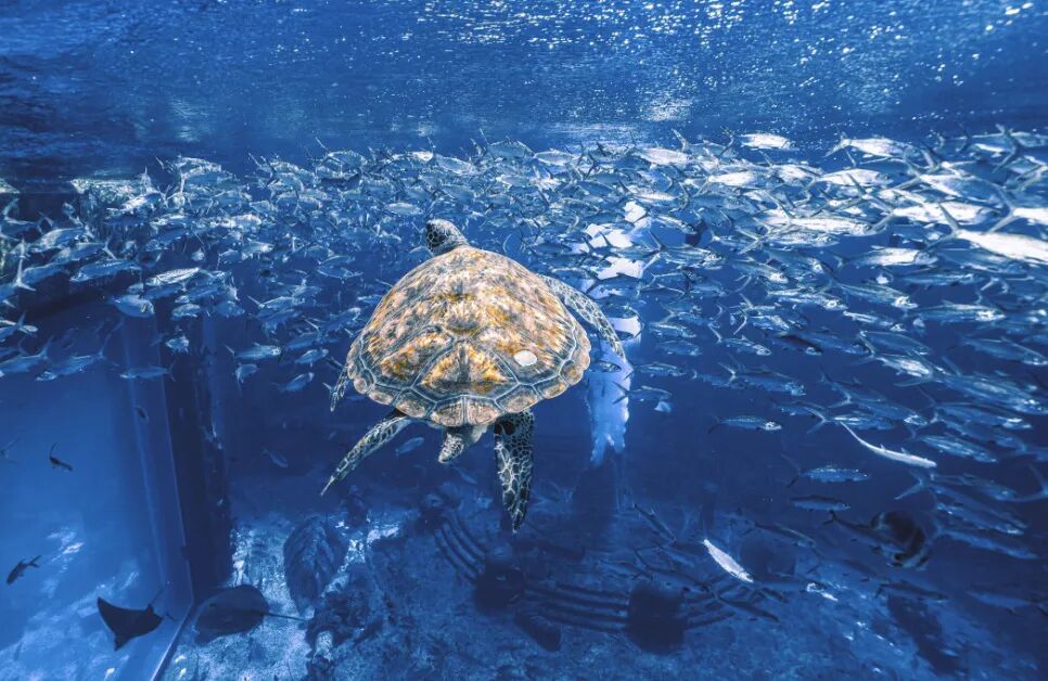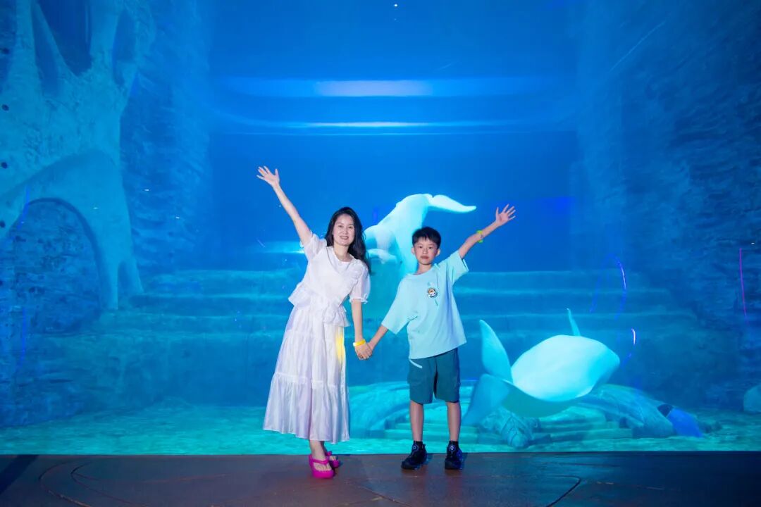 孩子们将在失落的空间水族馆,近距离与这些海洋精灵接触,在网红大使环礁湖前静静感受蔚蓝时光,在潜水平台可以投喂海底长寿吉祥物——海龟,感受海洋生物的灵性。