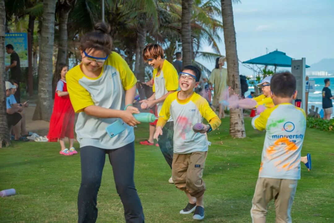 孩子们抵达三亚这片热带风情的岛屿后,即将开启一场蓝色梦幻之旅。在沙滩上,亲子家庭手持彩粉尽情撒欢,逐渐建立默契,点亮情谊,每个人都能玩得色彩缤纷。