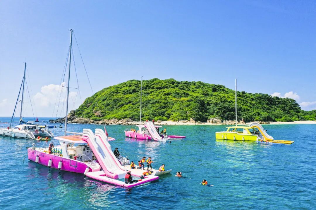 除了浮潜俯瞰“海底花园”,缤纷的水上运动,让亲子家庭解锁更多海岛玩法。海上滑梯、惊险香蕉船,奇妙魔毯、海钓等,为趣味海域生活增添了波光粼粼的蔚蓝记忆。