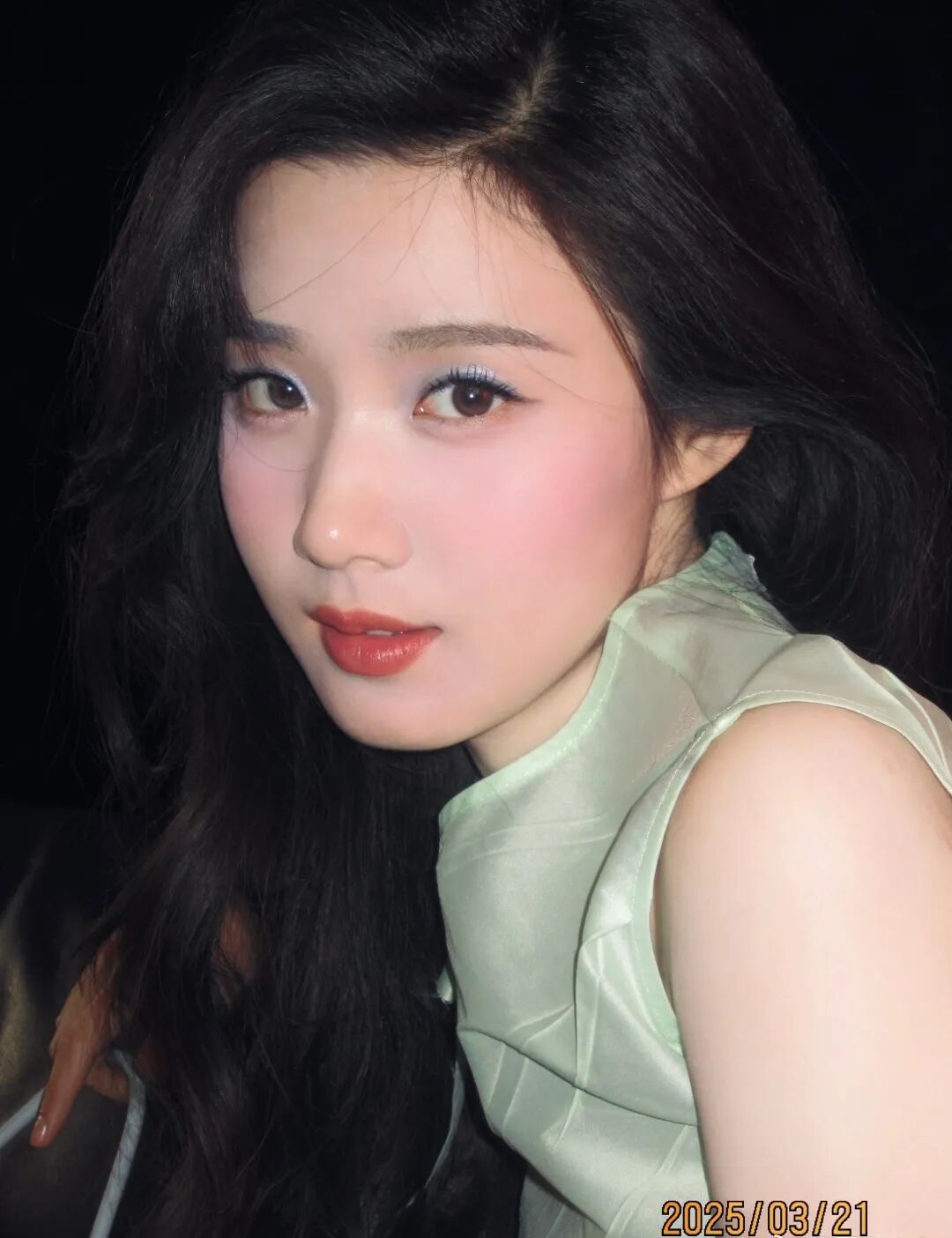 CICI宋妍霏的粉蓝撞色眼妆叠出了春日的透气柔焦感。大面积柔色腮红更是锦上添花,保留了轻柔的气质。