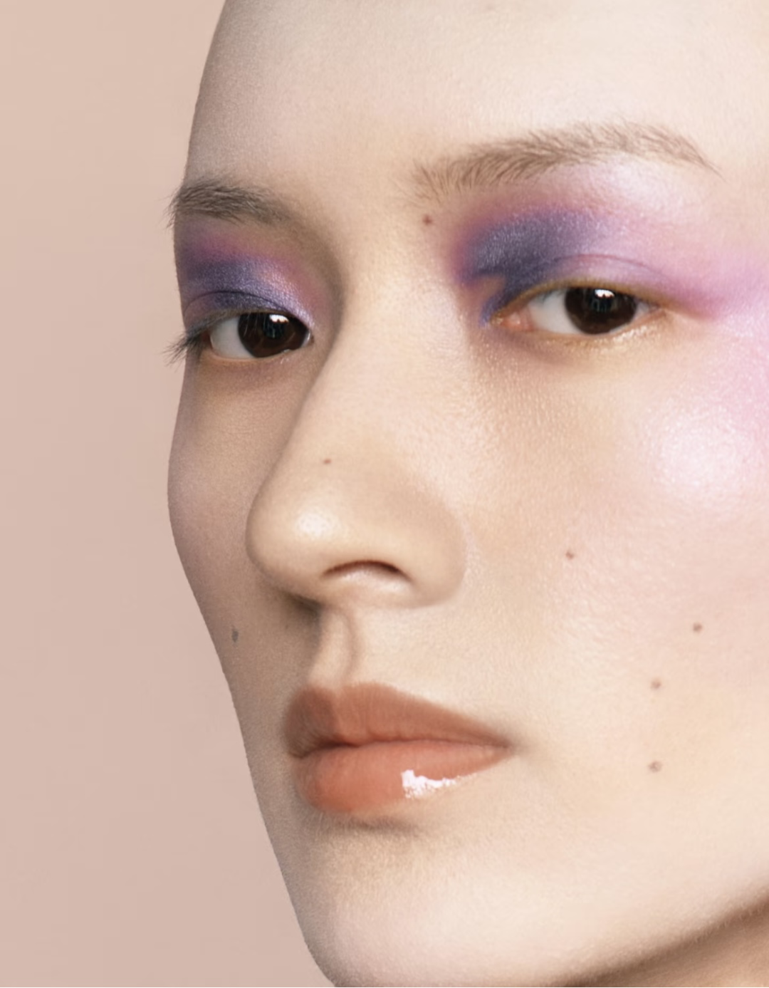 不冷也不热的薰衣草紫,拥有一种很奇妙的中立情绪。用在眼尾或上眼皮大面积晕染时,可以打破眉眼的沉重感,用在唇部内侧则更易塑造出一种如梦似幻的梦境感。