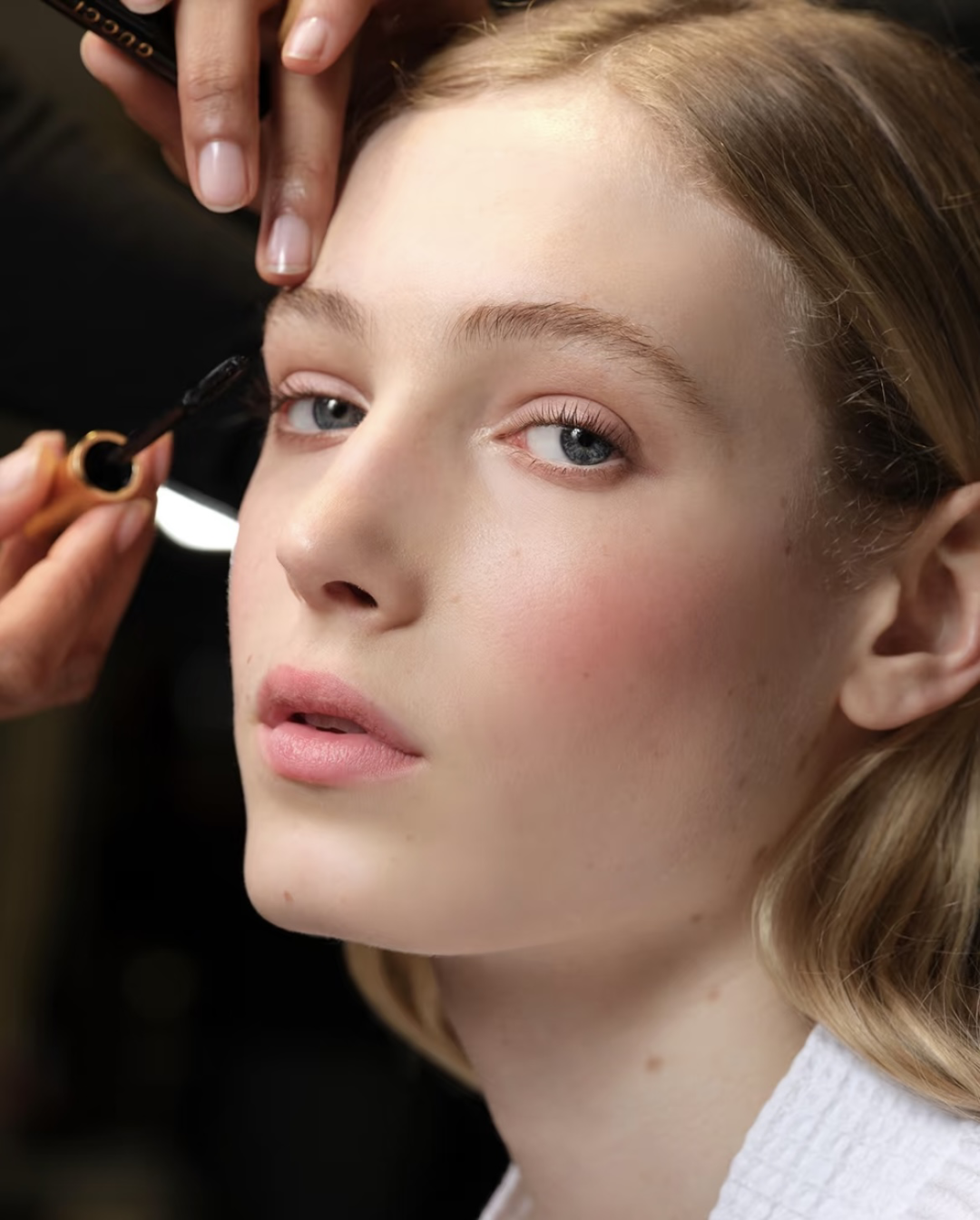 这一套配色体系,在Gucci 2025的秋冬时装秀场上就已经被验证过了。一抹柔情粉,画出了最具春日气息的妆容。