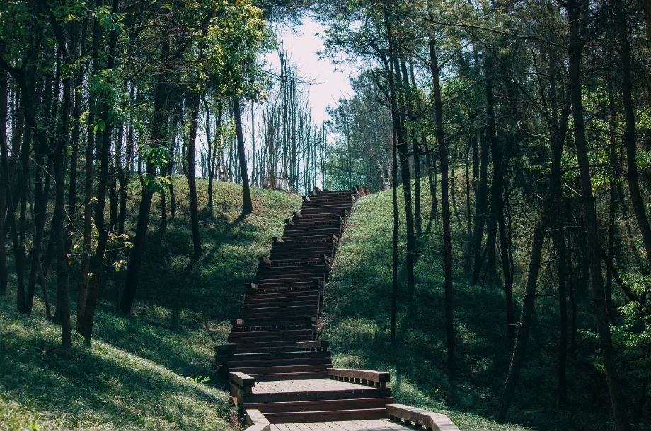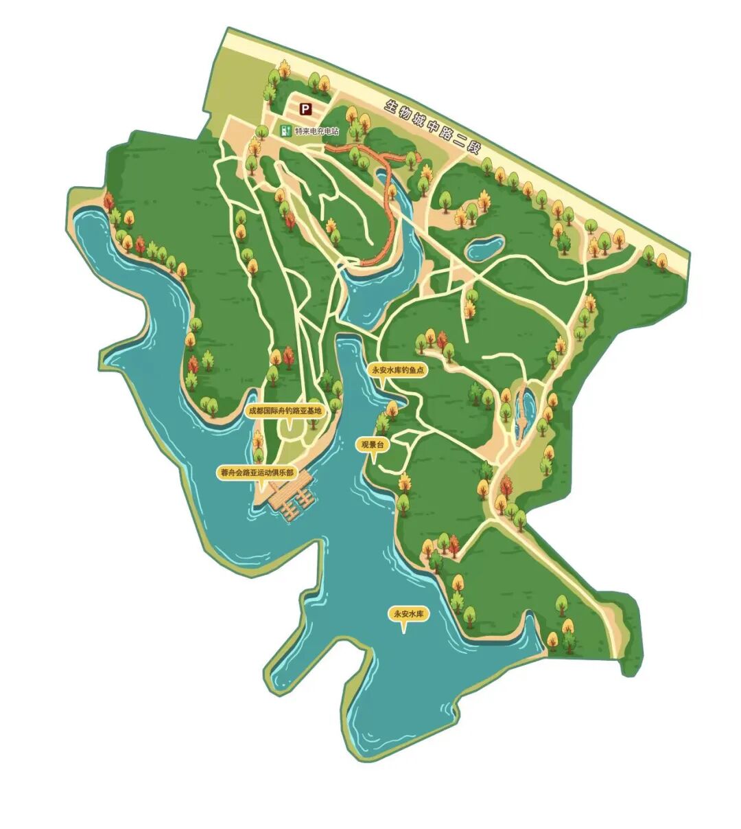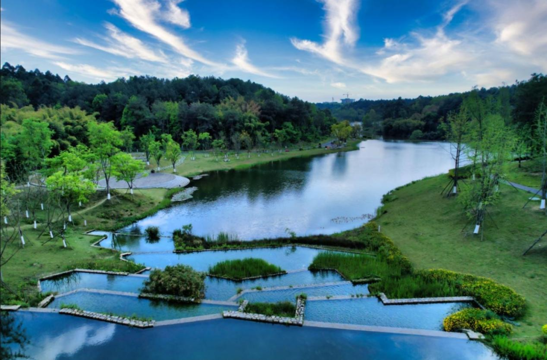 永安湖城市森林公园的前身是永安水库,因其秀丽的自然风光,一直是成都市近郊的休闲胜地。随着成都天府国际生物城的建设,永安湖的价值日益凸显。与很多公园不同,永安湖城市森林公园的土方改造量为0,所以走在公园里,更像走在山里,会爬坡,会走栈道。这里的森林覆盖率极高,3000多株的开花乔木,五十余年的柏树高达上万余棵。