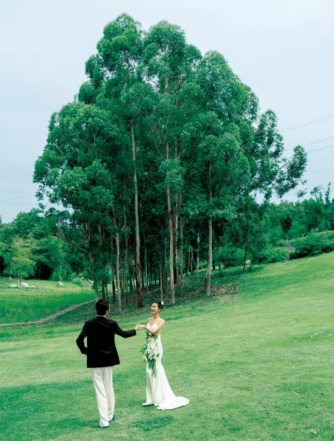 诺大的草坪,不少新人前来拍摄婚纱照,假装在新西兰。