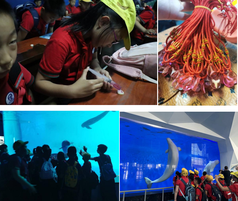 在海洋馆,讲解老师带领同学们亲近海洋,探索海洋世界的奥秘,认识海洋生物,观察海洋生物在水世界中的动态。并为学生们详细了解了海洋生物的各个物种及特点,介绍了世界海洋资源的分布及我国蕴藏的丰富海洋资源。自己动手制作鲨鱼牙树脂标本,近距离感受海洋生物。