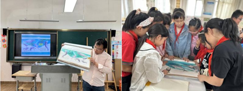 为进一步科学普及江豚的生物学知识,培养青少年珍惜生态资源、保护水域,海洋环境的意识。5月10日,济南市市中区泉海小学邀请写实画家、青少年美育实践导师刘阳为四年级六班学生进行了“守护江豚,守护蔚蓝之光”的主题教育活动。