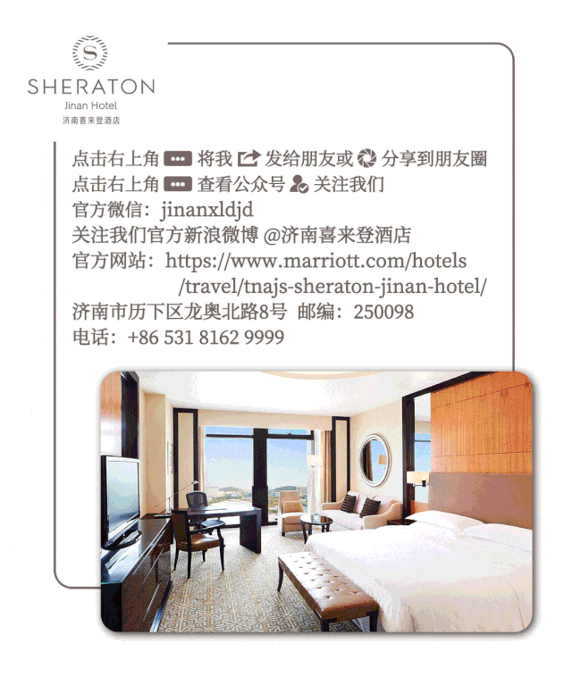 文章内容来源于公众号:济南喜来登酒店,点此可查看原文,内容版权归相关企业所有,本网站仅供交流学习。若涉及版权问题或存在侵权情况,请及时与我们联系,我们将第一时间进行删除处理。