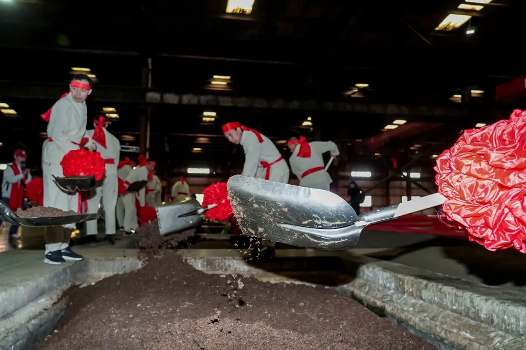 “一锹起,春回大地!”师傅们的号子声里,发酵了一冬的酒醅泛着琥珀光,浓烈的酒香瞬间灌满整个车间。