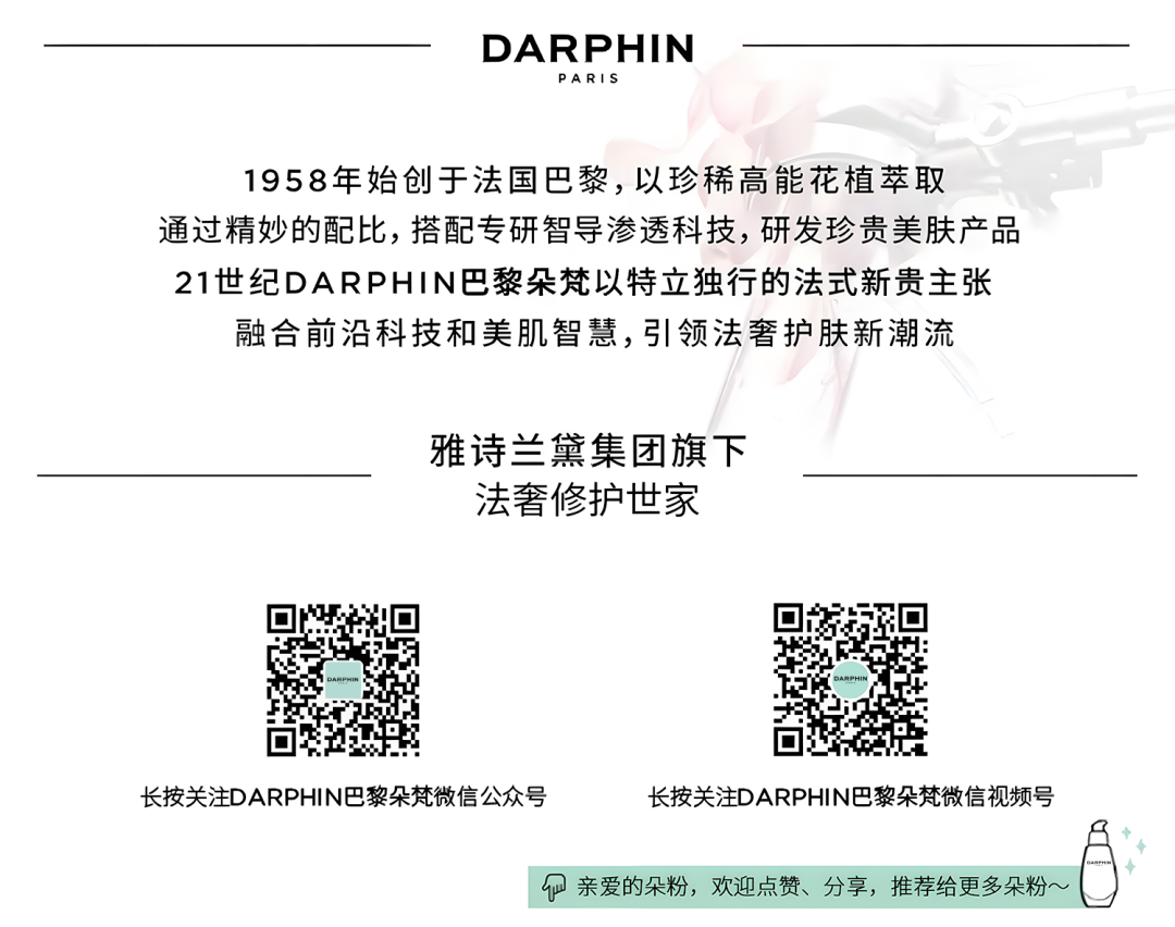 文章内容来源于公众号:DARPHIN巴黎朵梵,点此可查看原文,内容版权归相关企业所有,本网站仅供交流学习。若涉及版权问题或存在侵权情况,请及时与我们联系,我们将第一时间进行删除处理。