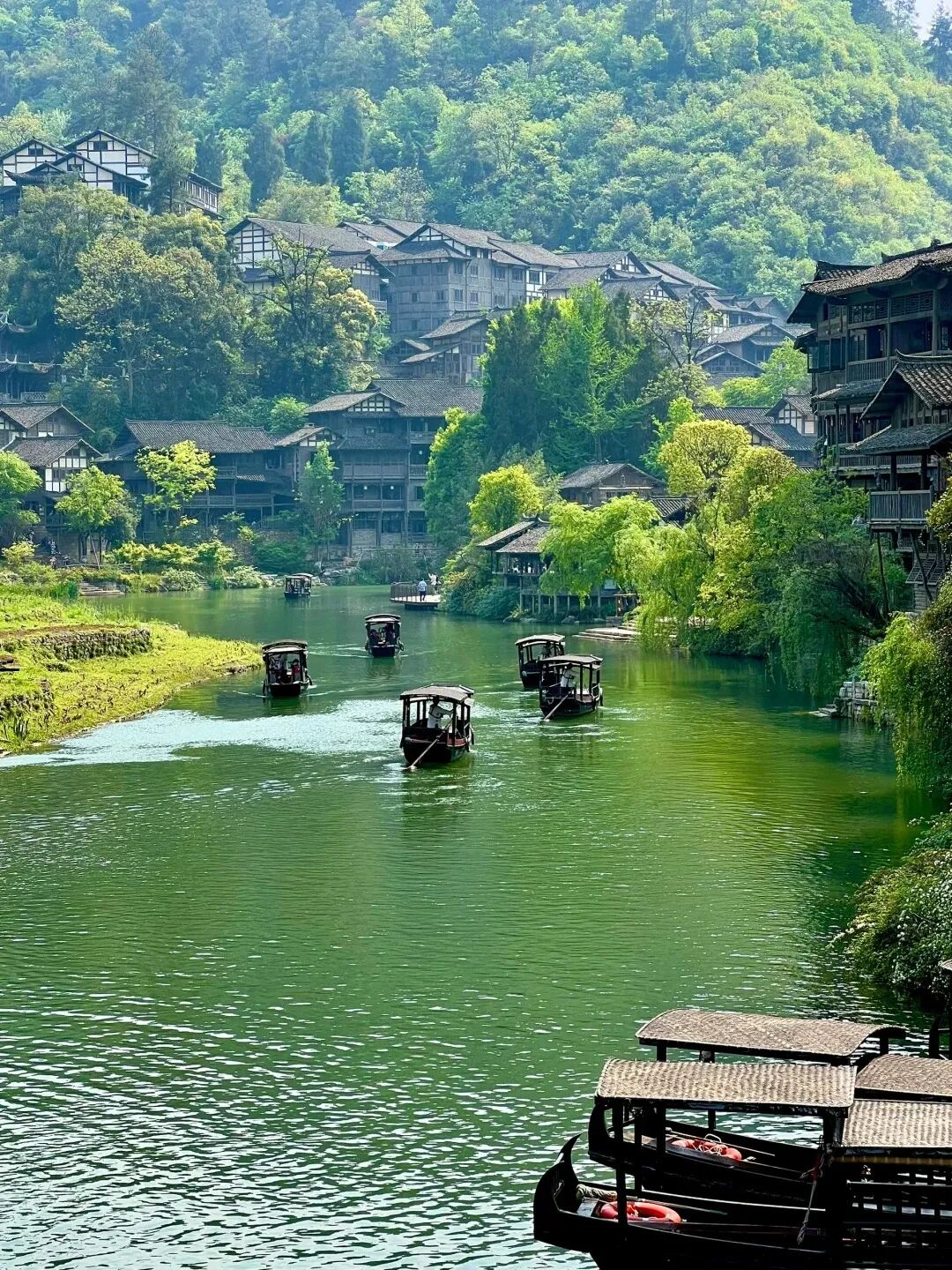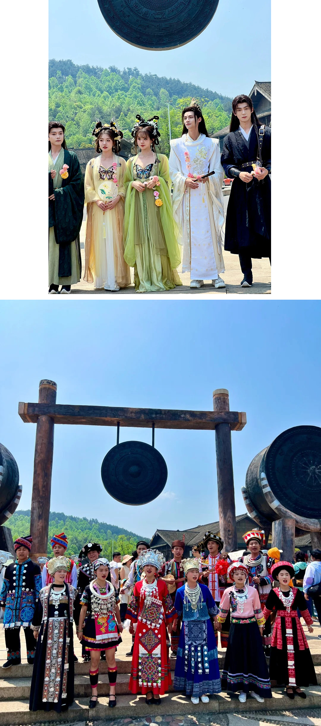 从成都起了个大早坐动车来到遵义,只为走进这现实版的《千与千寻》。每个周末全天都有丰富的文艺表演,国家级的非遗——独竹漂,上下午各有一场。东寨口的太阳鼓广场还有少寨主寨花迎宾,酷似罗云熙的白衣少年、张凌赫乌江寨分赫,还有鹿晗分晗。