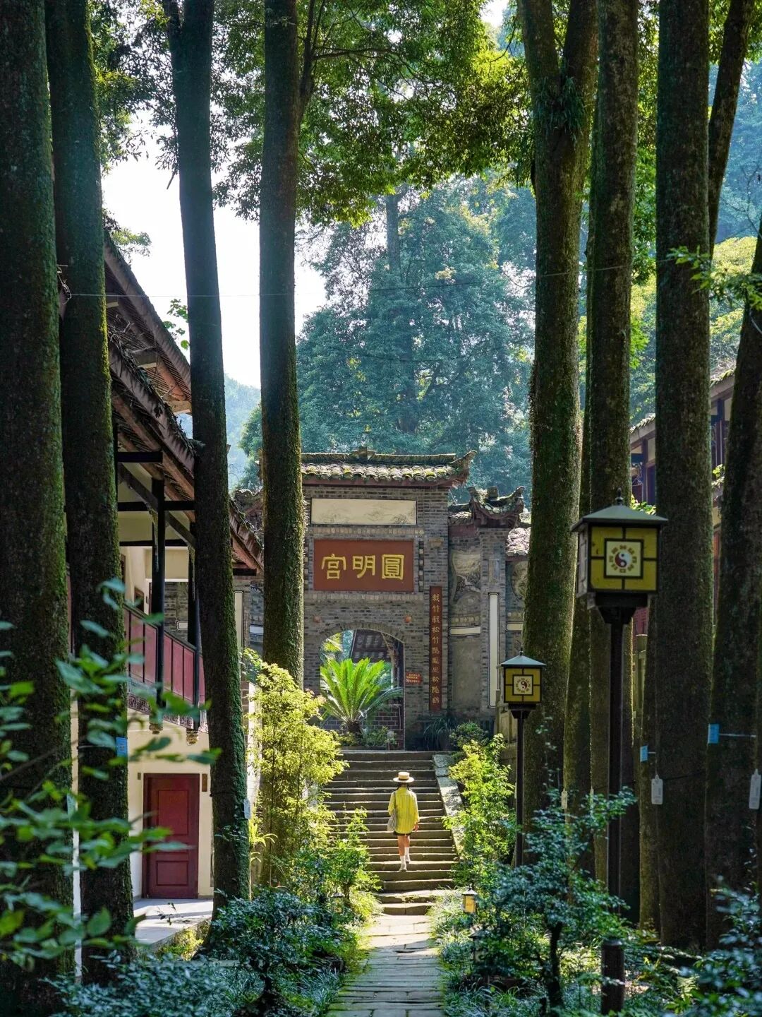 在绵延山脉中有一座古老的道观——圆明宫。道观建筑古朴典雅,红墙黛瓦在绿树的映衬下显得格外庄重。