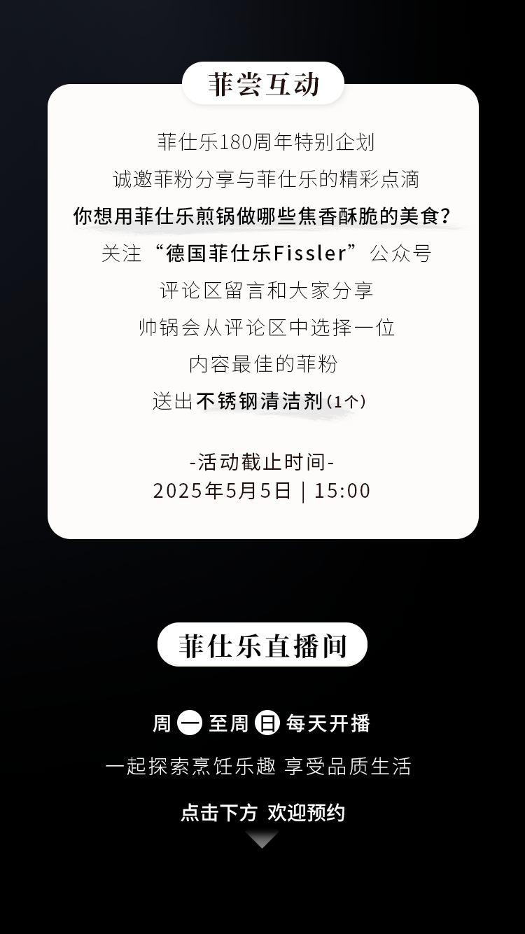 文章内容来源于公众号:德国菲仕乐Fissler,点此可查看原文,内容版权归相关企业所有,本网站仅供交流学习。若涉及版权问题或存在侵权情况,请及时与我们联系,我们将第一时间进行删除处理。