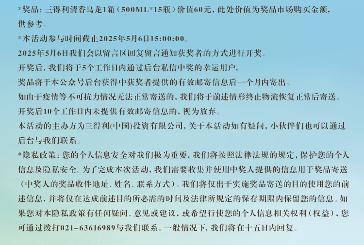 文章内容来源于公众号:三得利饮料,点此可查看原文,内容版权归相关企业所有,本网站仅供交流学习。若涉及版权问题或存在侵权情况,请及时与我们联系,我们将第一时间进行删除处理。