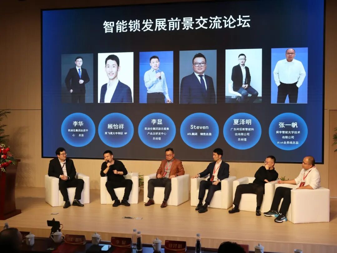 在智能锁发展前景交流论坛上,凯迪仕集团副总裁、产品及研发中心总经理李显,ATL集团销售总监Steven,广东柯伲斯智能科技有限公司总经理夏泽明,英飞凌大中华区VP顾怡祥,凯迪仕集团品质管理中心总监李华,舜宇智能光学技术有限公司Aiot业务线总监张一帆等业界优秀领袖代表会聚一堂,共话智能锁行业的未来趋势与挑战。