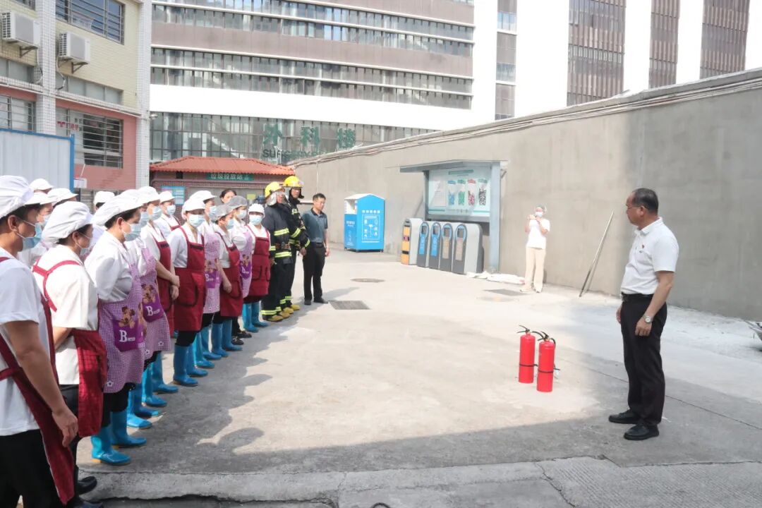 演练结束后,保安队对全体食堂员工进行了灭火器的使用培训,学校党支部邓木金书记对本次演练进行了总结点评。他对演练过程中各环节的快速响应和协同配合给予了充分肯定,同时也指出了演练中个别工作人员反应不够迅速、个别员工安全逃生意识不够强等问题。针对这些问题,学校将进一步加强消防安全培训,提高全体人员的应急处置技能。