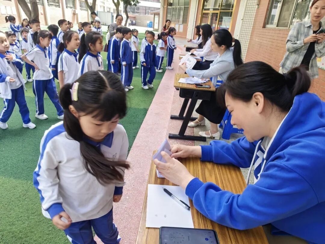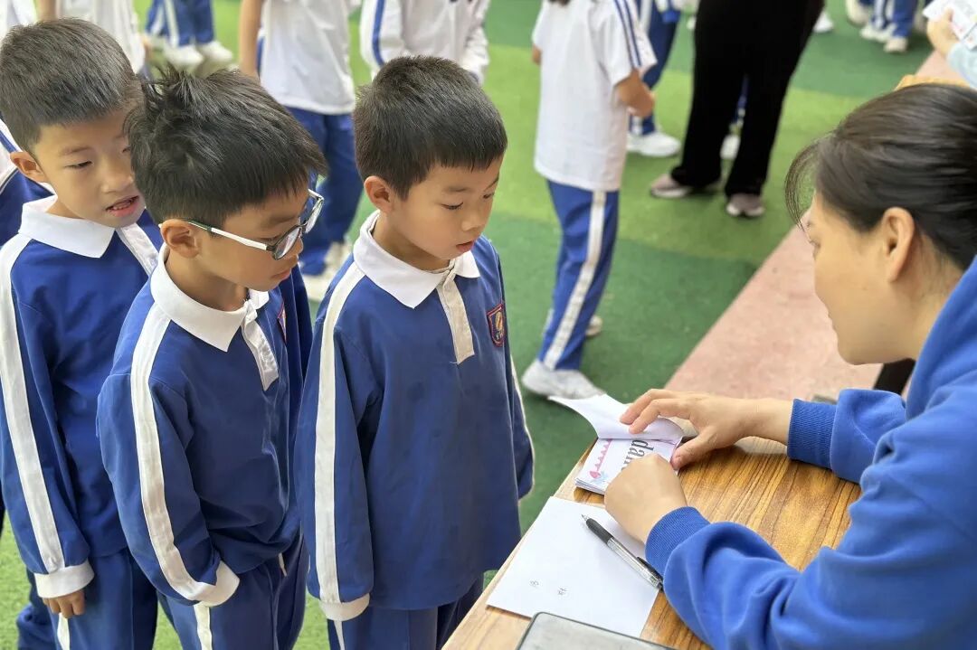 “pink,pizza,robot,dance,seven...”随着老师一声令下,一年级孩子们要在规定时间内准确认读出60个单词。既要拼速度,又要比词汇储备!小操场上的奔跑身影、队友间的默契配合,让单词记忆不再是枯燥的背诵,而是一场充满激情的“知识接力”!