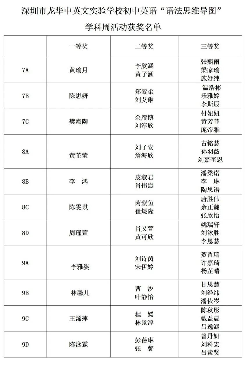 经过激烈角逐,七八九各年级的优秀学子们脱颖而出,分获一、二、三等奖。