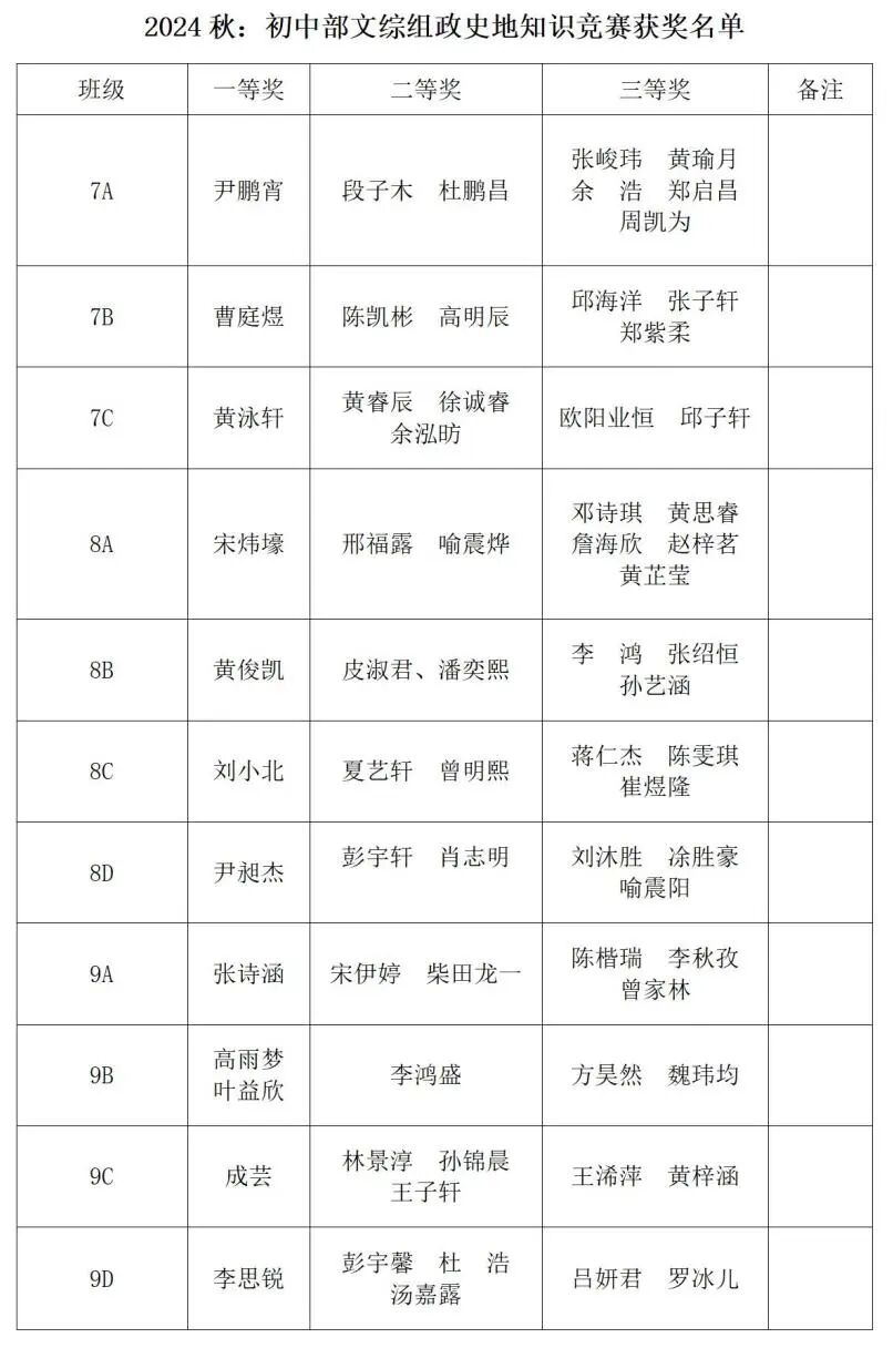 本次知识竞赛按年级分三批,以班级作为参赛单位,竞赛所设置的试题广泛覆盖了道德与法治、地理以及历史等多方面知识,紧密贴合教学内容。此次竞赛积极响应 “双减” 政策号召,深入探寻教材内潜藏的丰富知识资源,精准对标中考考查要点,力求全面、充分地考查同学们对于各类知识的掌握程度,同时切实检验同学们灵活运用知识、展开思维活动的实践能力,为同学们的学习成长提供有力的阶段性反馈。