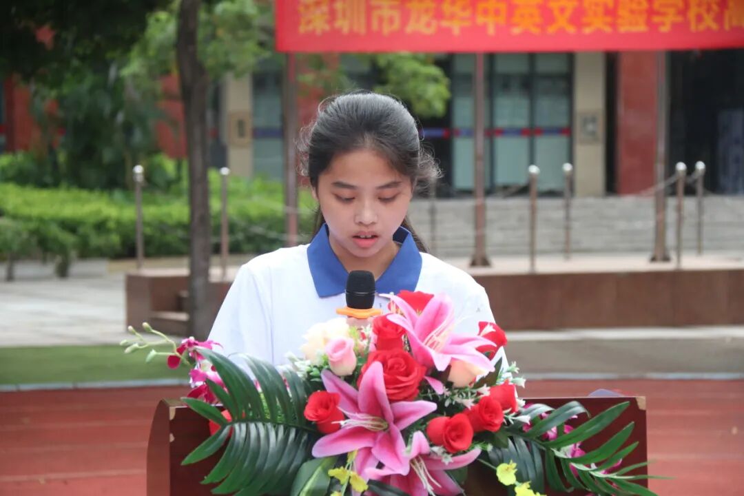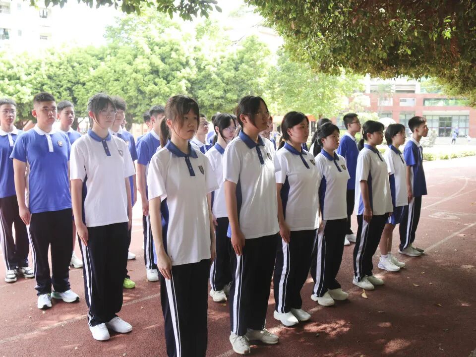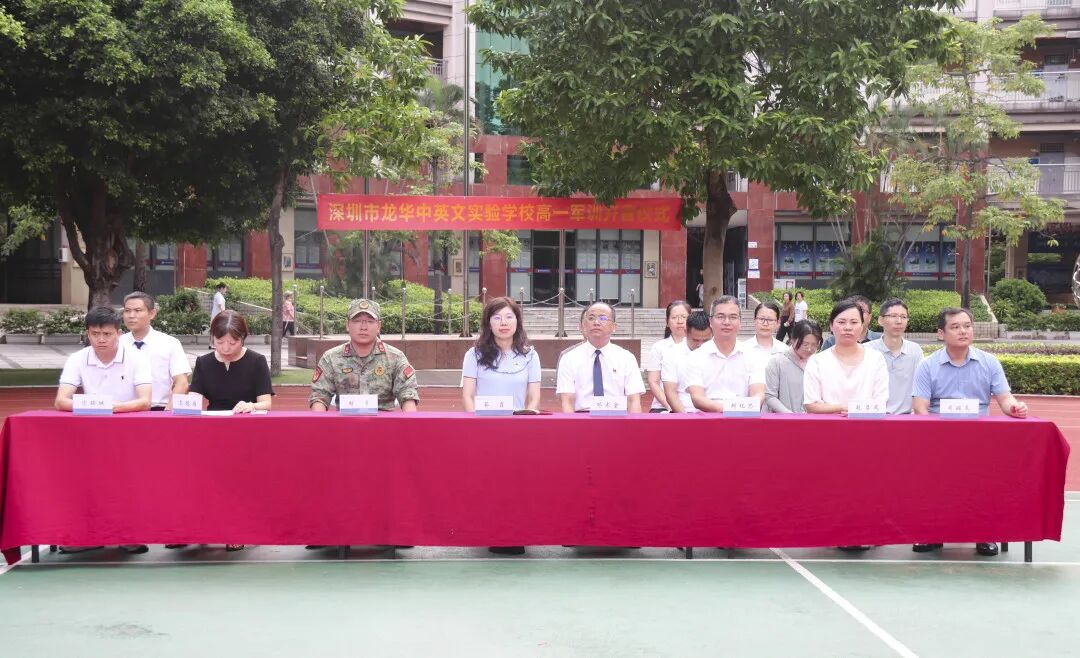 开营仪式在庄严的国歌声中拉开了帷幕,仪式由德育处干部王红领主持。龙华区委教育工委派驻学校第一书记蔡霞、学校常务副校长胡化忠、党支部书记邓木金、军训军官代表胡勇,以及祝启凤、高鸿雁、周瑞友等干部,高一年级班主任、学生发展导师等出席了开营仪式。