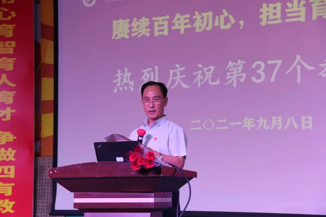 金玉善副校长在会上宣读了学校庆祝第37个教师节活动的安排,祝愿大家在做好疫情防控的同时,过一个廉洁、绿色、温馨的教师节!