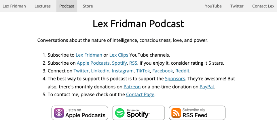 知名播客创作者 Lex Fridman 的个人网站,