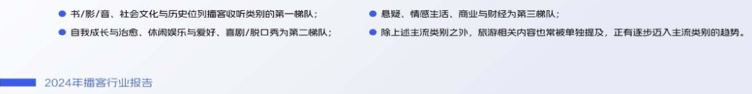 我自己的体验和朋友的反馈看,我们超过一半听播客的时间都会花在心理、旅行、艺术、历史、体育、悬疑等更偏向于提供情绪价值或休闲娱乐方向的播客,比如作为一个足球迷,笔者自己就会每周固定听两档体育播客,回顾这一周的比赛及新闻,而编辑部的另一位同事表示,她最喜欢讲“离奇案件”的播客。