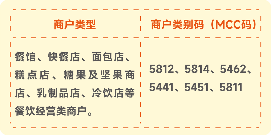 *本次活动支持的餐饮商户类型及商户类别码如下: