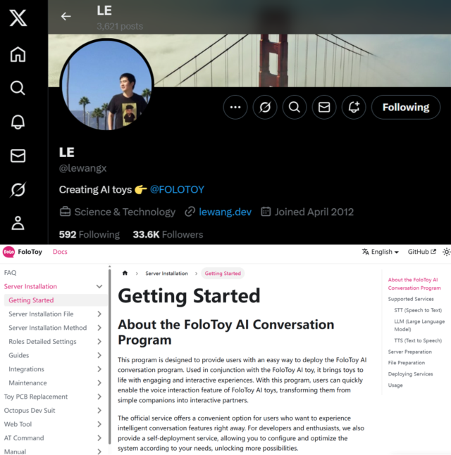 王乐个人主页、FoloToy 主页 | 图源 X、FoloToy 官网