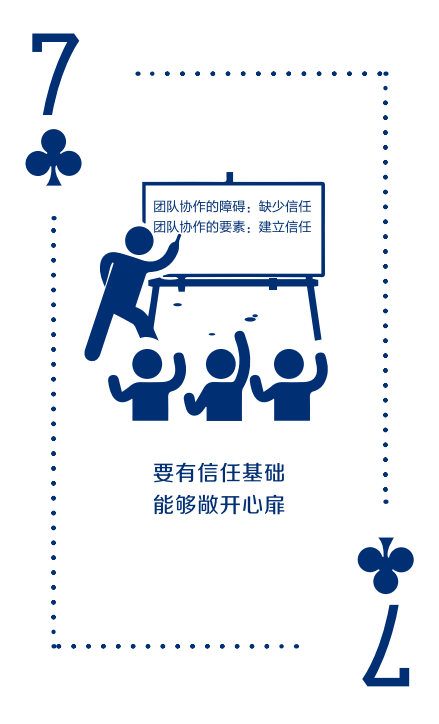 亮“「建立信任」牌 —— 要有信任基础,能够敞开心扉”,信任是团队的核心也是团队的基础。