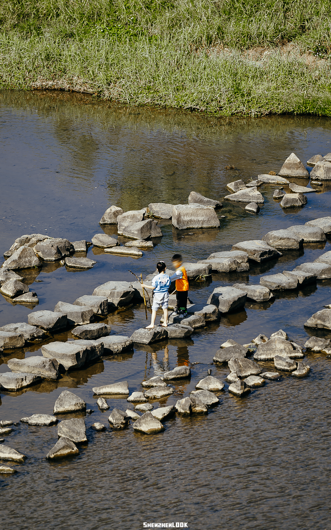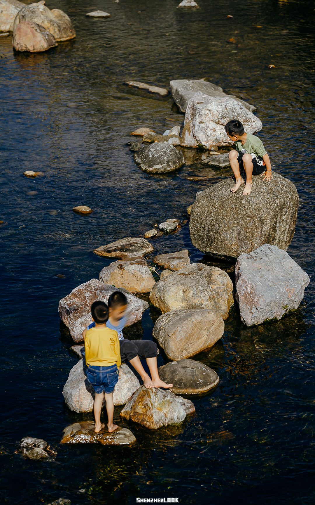 坐在河里的石头上,看着小孩们拿捞网在水里比划,不由得想起童年记忆中,那份最原始最纯粹的快乐。
