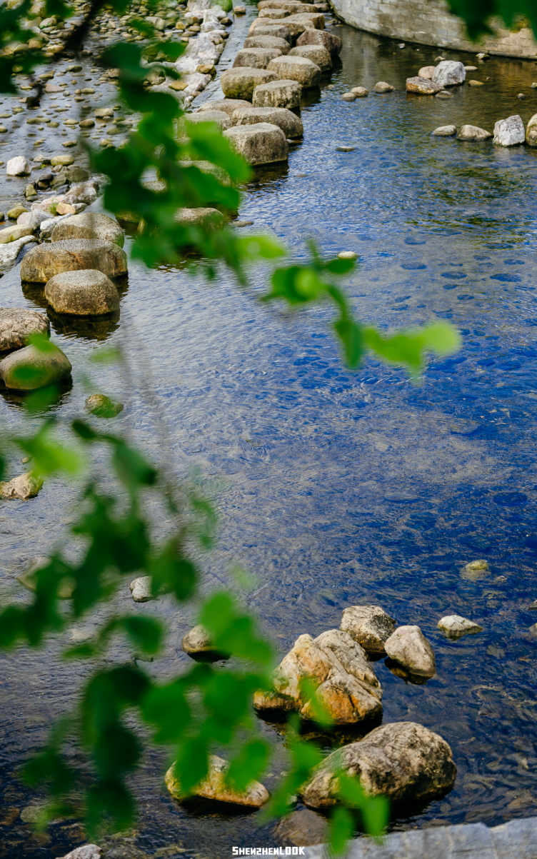 正是炎热的盛夏,河水从脚边流过,让人忍不住下水好好感受这份凉爽。