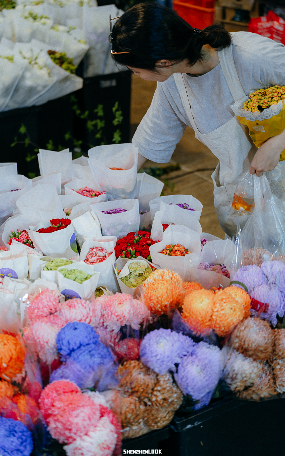 老罗湖人应该都不陌生,位于黄贝路上的这一条花街。数下来大概有五六间,虽然不多,但每间几乎都是开了二三十年的老店,铺口鲜花琳琅满目,既能挑到具有年味的盆景花束,也能满足日常的选购。![]()