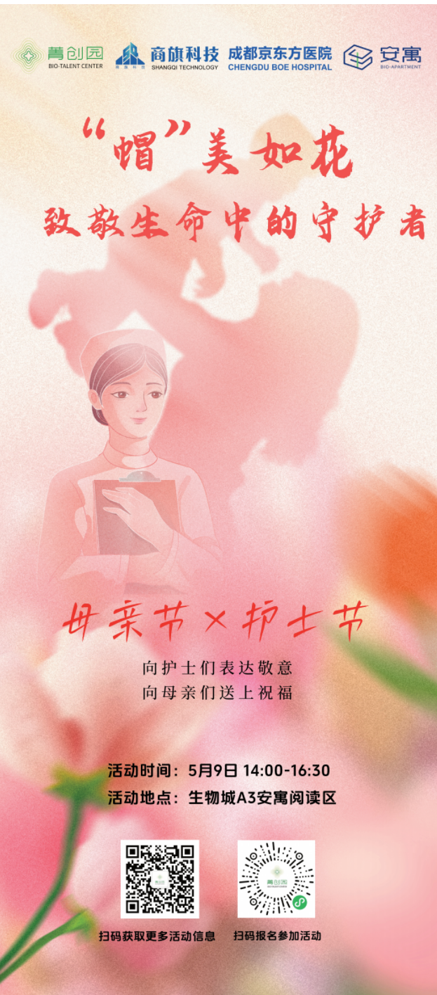 本月即将迎来母亲节和护士节,生物城安寓借此时机双节同庆,母亲节 & 护士节双主题关爱行动即将启幕。
