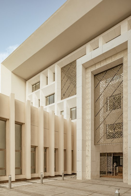 设计的一大亮点是 méchouar ——这一摩洛哥典型的小径结构被重新诠释为一个开放、有序的活动中心,用于连接不同空间。其与大量运用的庭院与遮阳结构,以及石材、木材和金属工艺,共同呈现了这座建筑对摩洛哥传统美学的当代表达。