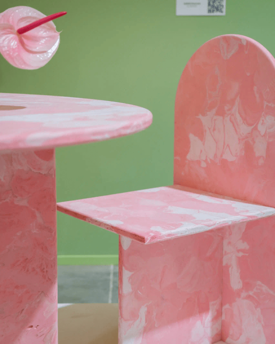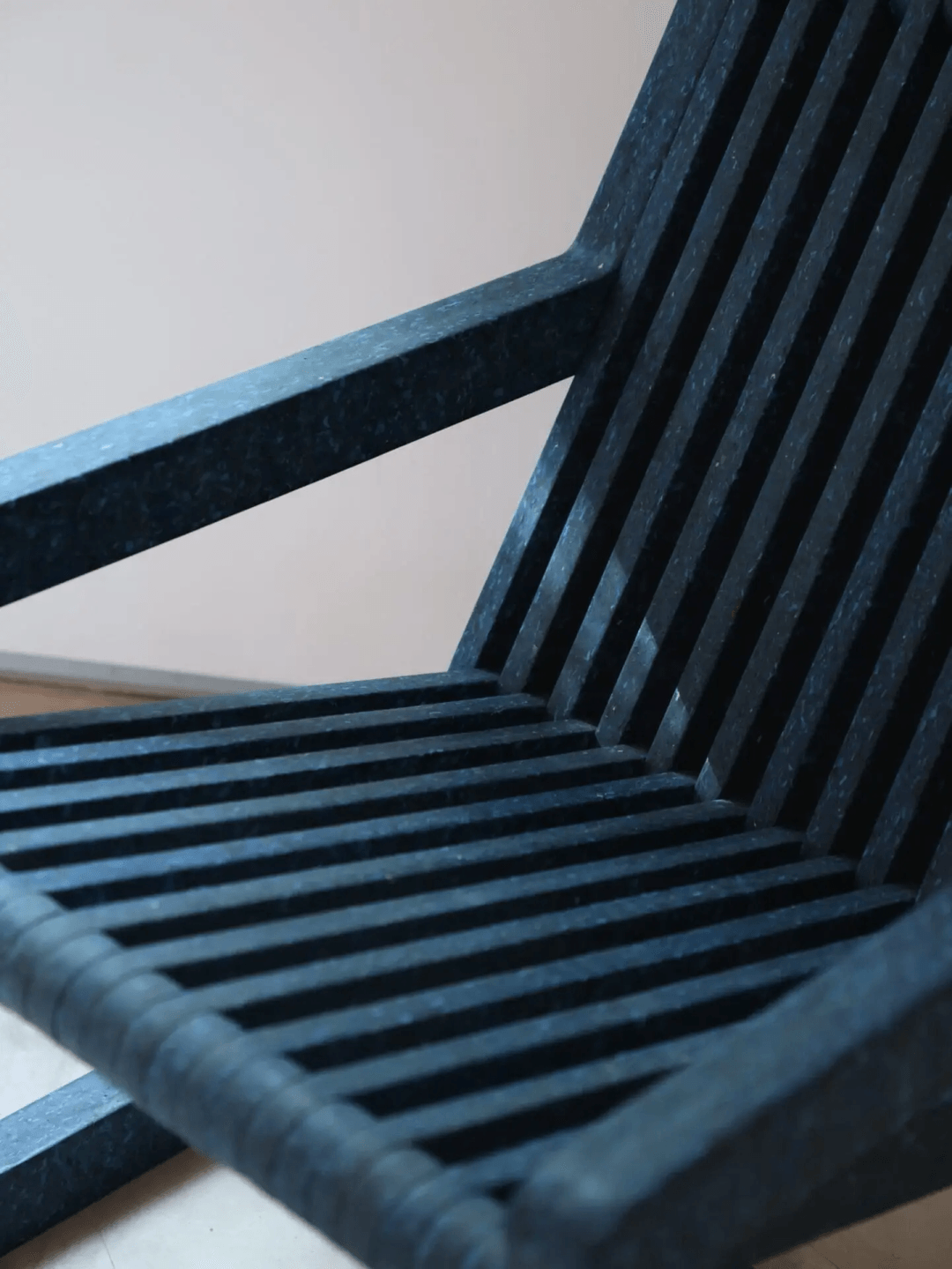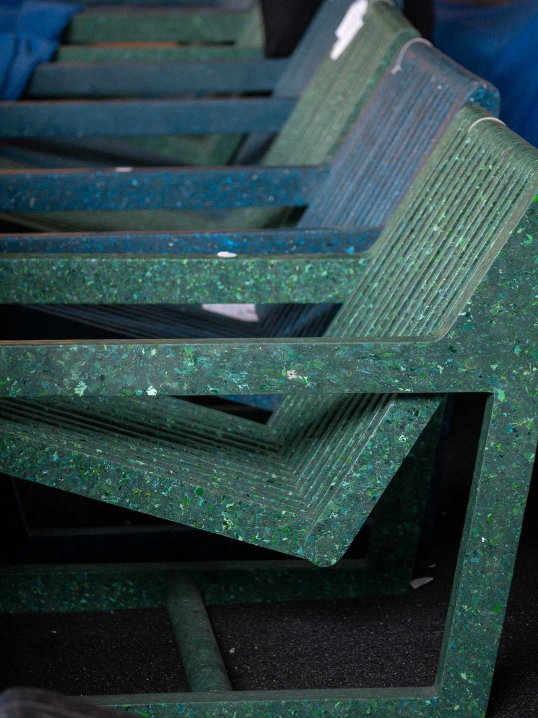 整个循环流程包括清洁塑料袋、将其熔化为均匀的薄片,而后将其堆叠、制成家具。Bencheghib 介绍,“我们推出了一款 100% 由再生塑料制成的产品,它象征着我们的回收成果。”
