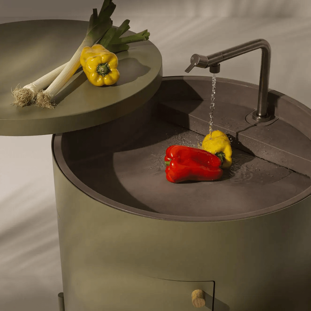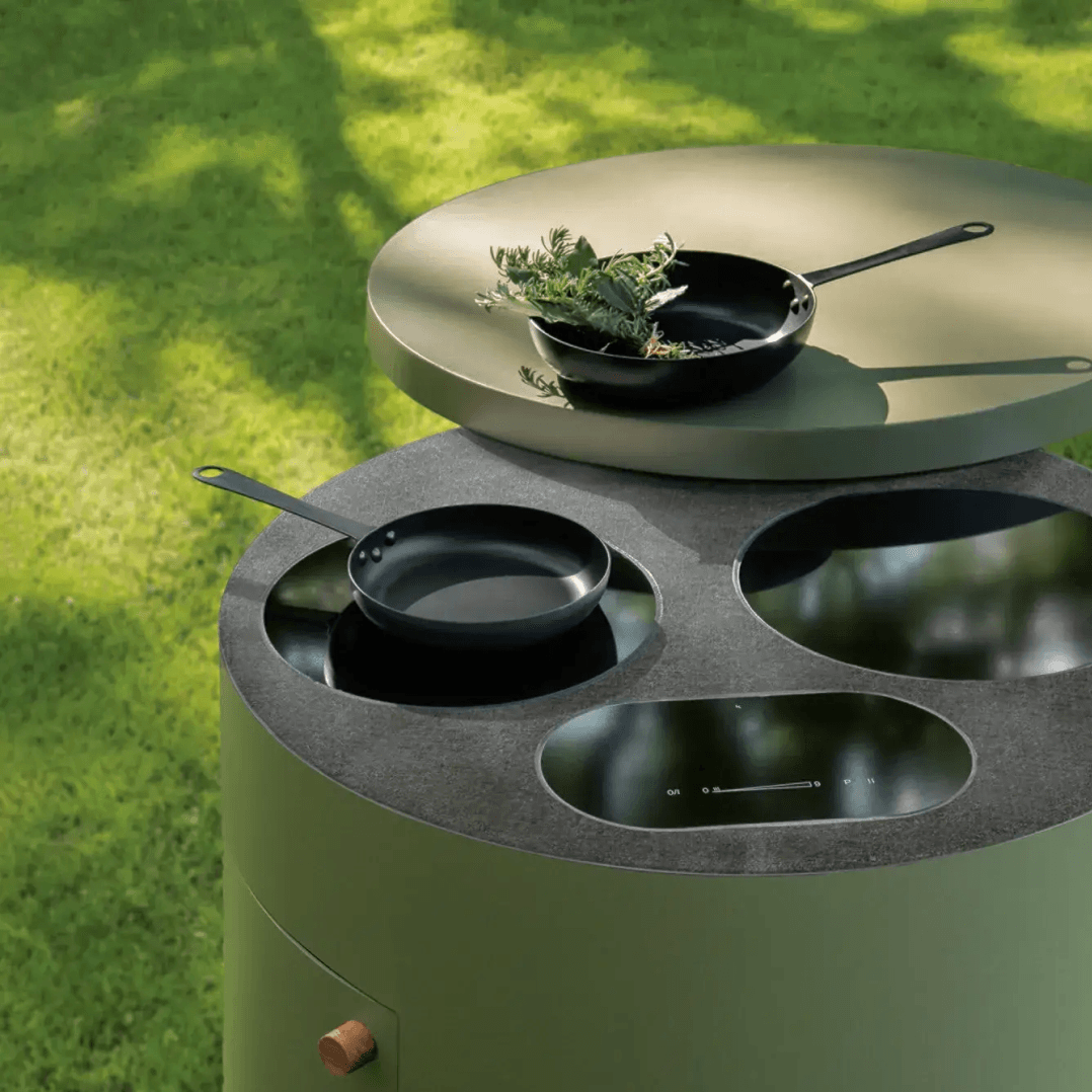 该系列还包括电磁炉、水槽和碗柜,并提供橄榄绿和赭黑两款配色,让户外烹饪在便捷、高效的同时,拥有简约的美感。