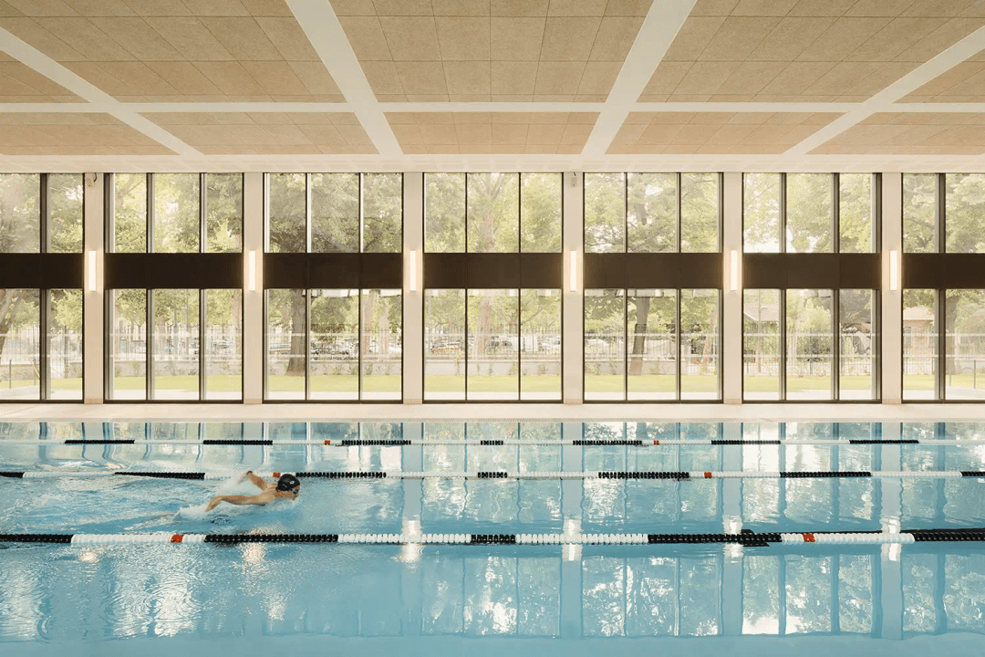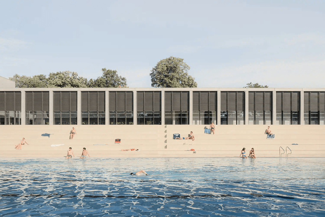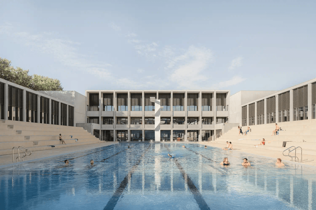 如何改造一所建于上世纪 30 年代的室外游泳池?位于里昂的建筑事务所 4_32 Architecte 希望:在保留原有风格的基础上,打造真正包容的空间,让全年龄段、不同身体素质的人,都能享受更好的运动体验。