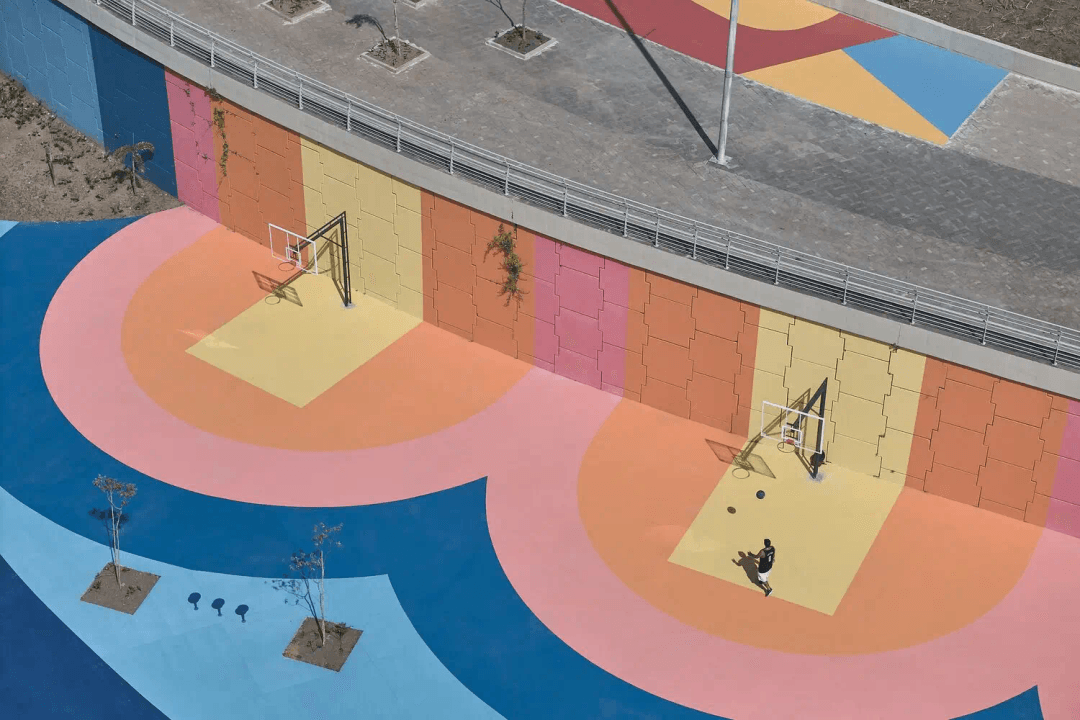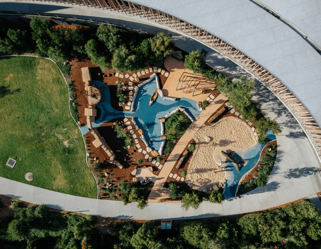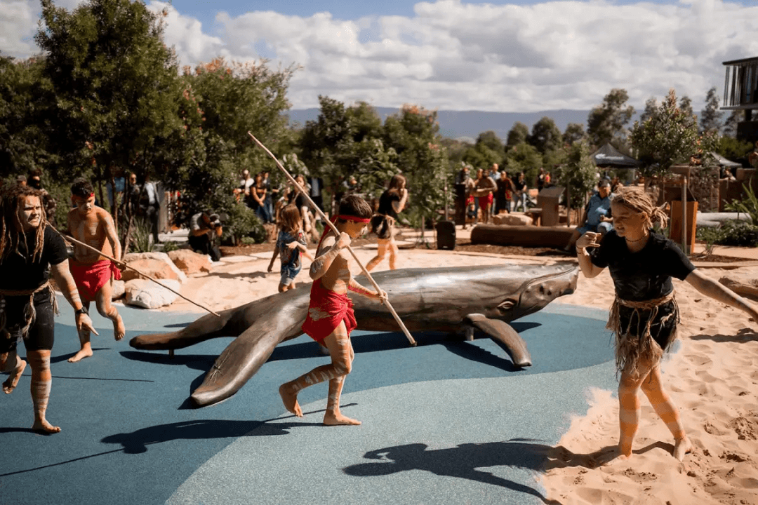 孩子们核心的诉求很简单:能自由地奔跑,跳跃,玩耍。Yirran muru playspace 完美地满足了这些需求,同时融入了原住民的文化与实践。游乐区呼应了当地地貌——蓝色区域代表海洋和湖泊,沙坑象征海滩,石质景观则对应悬崖地形。