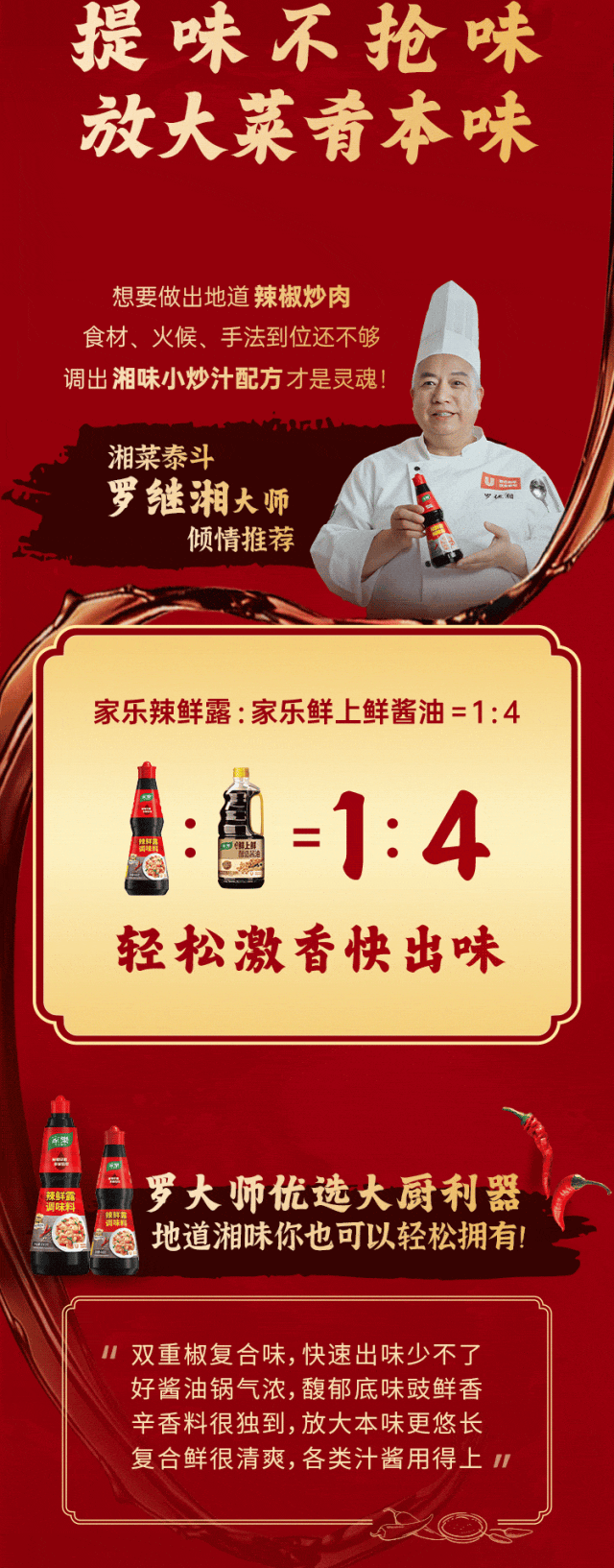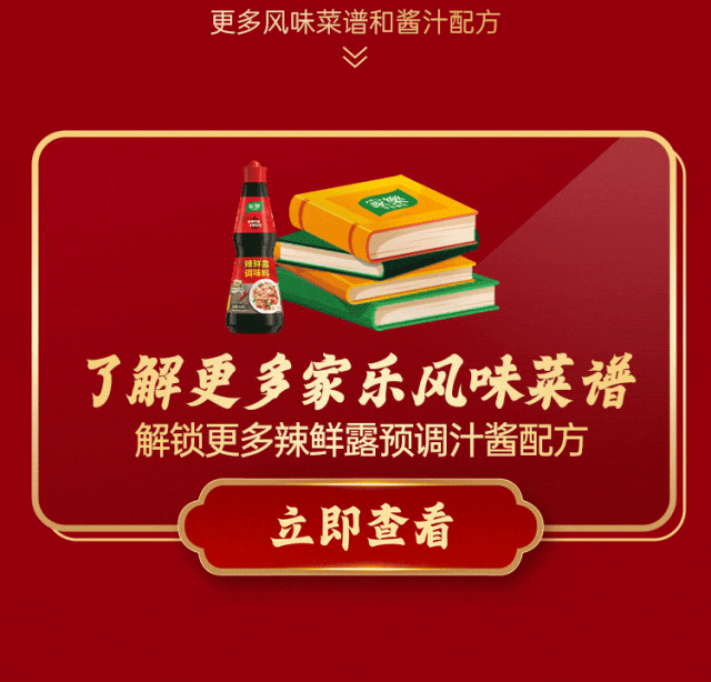 摘要:小炒汁就用家乐辣鲜露,一淋出味激头香,放大菜肴好风味。风味放大器,更香更出味!