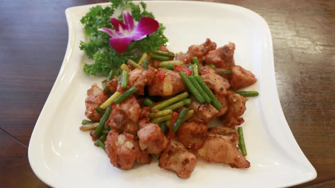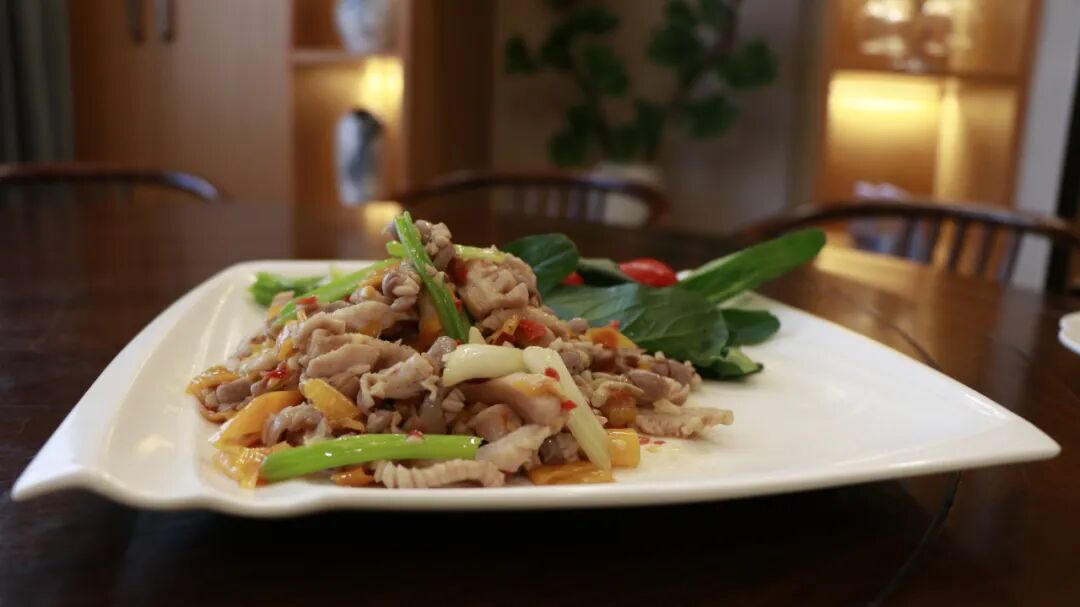 拆骨肉搭配上脆嫩清爽的尖椒炒制,肉香四溢,回味悠长。