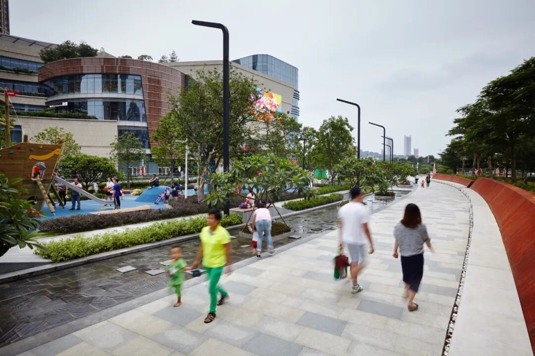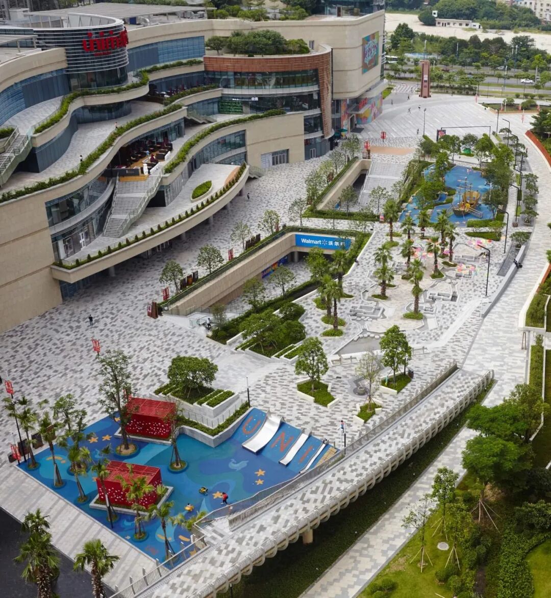将公园元素融入商业体,其实并非新鲜事。早在 2016 年,以 “立体公园购物中心” 为理念而打造的佛山中海环宇城开业,打造了一个全开放的绿化水系公园商业。