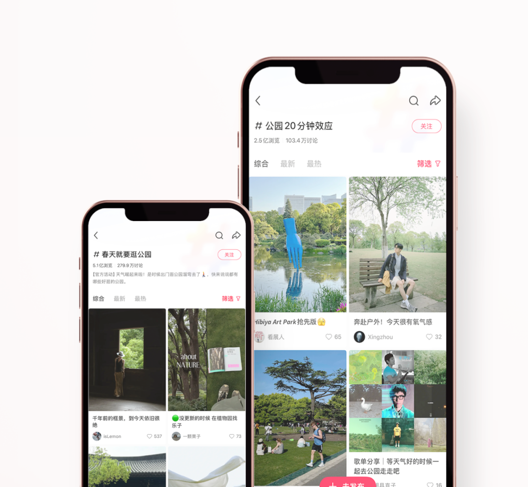 以小红书为例,#春天就要逛公园 相关话题浏览量近 3 亿次,搜索量同比增长 685%,#公园 20 分钟效应 相关话题浏览量超 8000 万次,皮划艇、徒步、钓鱼、骑行、野餐等户外活动成为都市人迎接春天的方式。
