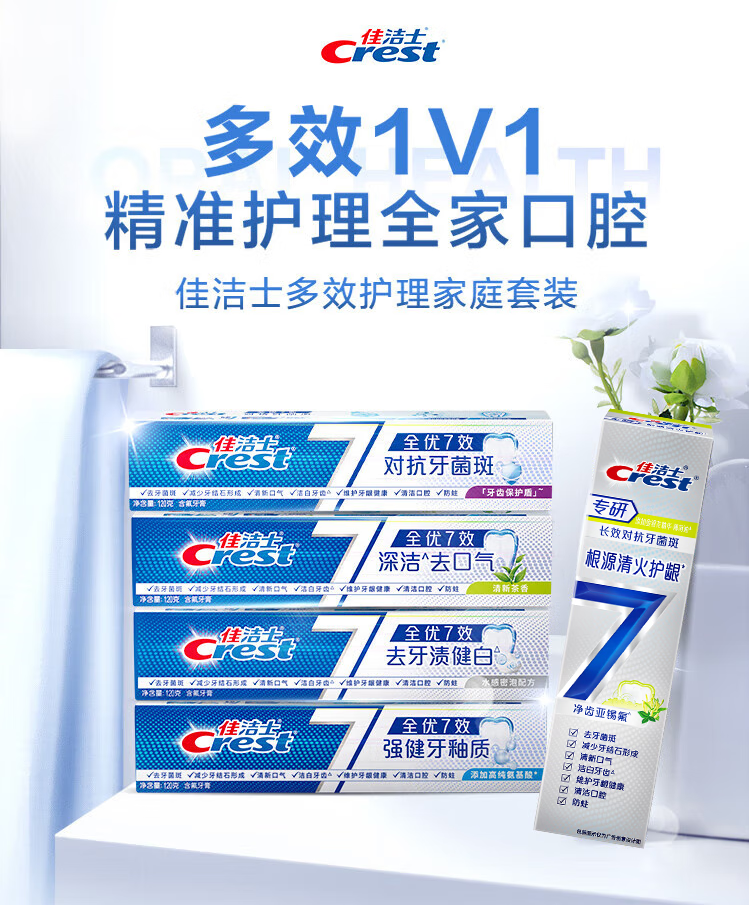 同年,佳洁士聚焦消费者时常经历的牙龈不适、牙结石、牙菌斑等口腔问题,研发推出一套可以满足全家老少口腔护理需求的佳洁士全优七效牙膏,致力于一站式解决多种口腔亚健康问题。