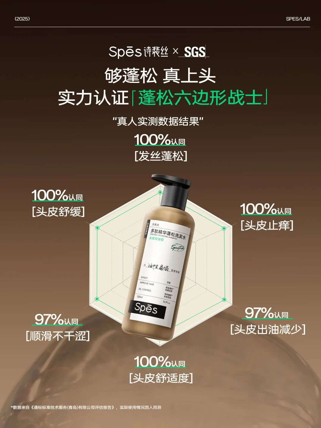 作为中国洗护科技标杆,Spes诗裴丝以技术突破为核心驱动力,投入千万级资金建设全球创新研发中心,联合浙江大学、中国药科大学等顶尖高校及法国仙婷、美国陶氏等8大国际实验室,针对亚洲人 “直发、毛囊弱、发丝细” 的特征展开专项研究,成功攻克多肽成分在洗护领域的稳定性与渗透性难题,研发出多项针对国人头皮的成果。五年间,Spes以持续的产品创新能力赢得消费者的青睐,推动国内洗护行业不断向前突破。